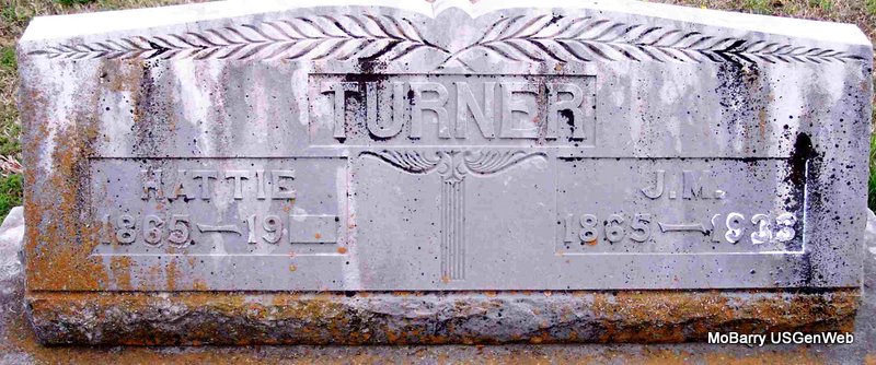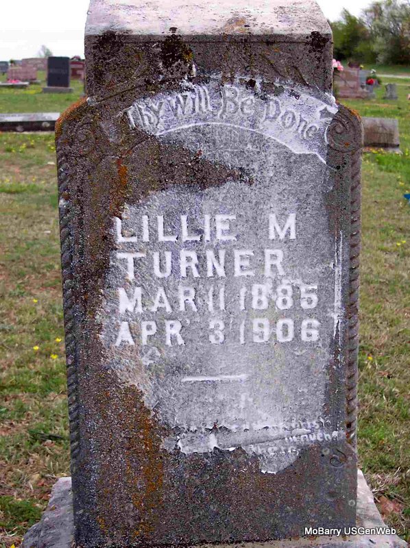 | TURNER, Lillie | Mar. 11, 1885 | Apr. 3, 1906 Barry Co., MO |