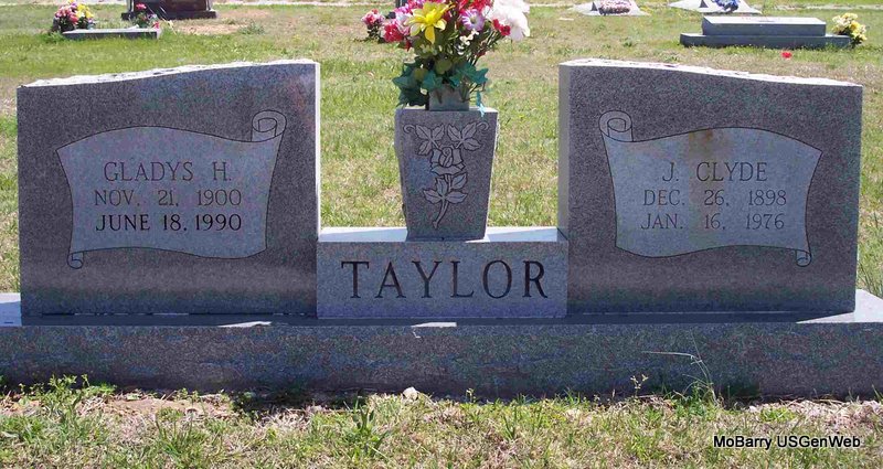 SSW: Gladys H. - Research Note: WWI Draft Reg.: He registered in Madison Co., AR and his nearest relative was his father, C. H. Taylor. SSDI gives his last residence as Purdy, Barry Co., MO. His SSN was issued through the Railroad Board. He was the son of Charles Henry Taylor and Drucilla Hudspeth. | WWI Draft Reg. SSDI Phyllis Long Photo Diana Cope |