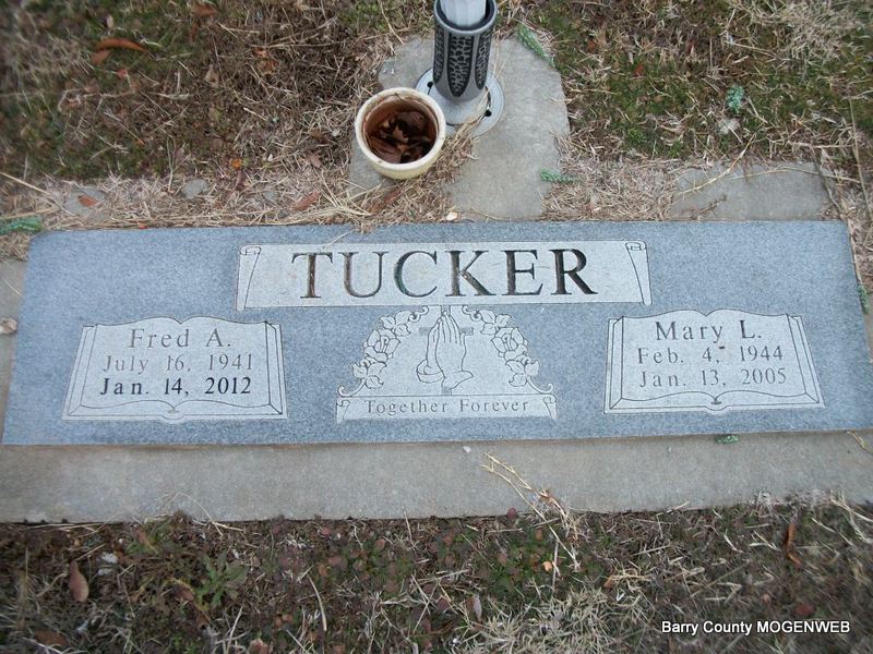 Research Note: Cremation arrangements and private burial are under the direction of the White Funeral Home and Crematory, Cassville, Missouri. - Son of James Arthur Tucker and Cleva Pearl Harper. He married Melva Dean Swafford on Aug. 24, 1957 in Exeter, Barry Co., MO by Jess Higgs. | White Funeral Home Census MO Marriage Records Phyllis Long |