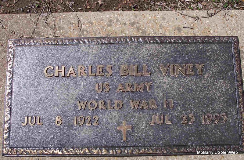 SSW: Anna - Inscription: "Married Nov. 21, 1973" - Research Note: Served in the US Army. SSDI gives his last residence as Rogers Benton Co., AR. Son of Clarence Elmer Viney and Ollie Mae Fortner. He first married Dorothy Jeanette Morrison. Probably divorced. - MO Marriage Records give Charles W. Viney, age 45, of Monett, MO married Lorna Eleanor Richmond, age 32, of Purdy, Barry Co., MO in Lawrence Co., MO on Apr. 23, 1968. Third married Anna. - WWII enlistment records give Charles W. Viney born 1922 AR, enlisted on Oct. 2, 1942 in Kings Co., CA. He was single and a farm hand. - Military Stone - Inscription: "US ARMY WORLD WAR II" | SSDI MO Marriage Records WWII Enlistment Records Census Phyllis Long Photo Photo Diana Cope |