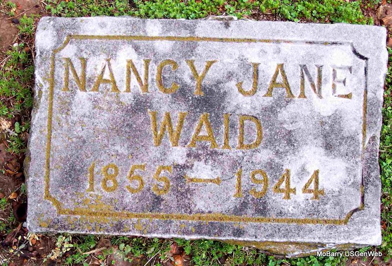| WAID, Nancy Jane (NELSON) | 1855 Pierce City, Lawrence Co., MO |