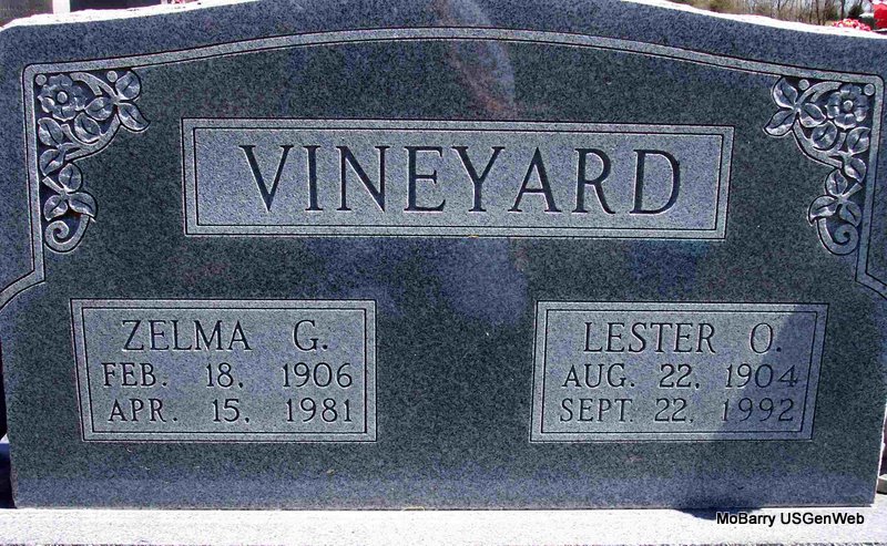 SSW: Zelma G. - Research Note: Son of Charles Abner Vineyard and Margaret Elizabeth Black. He lived most of his life in the Exeter and Cassville areas. He moved to Memphis 14 years ago from Cassville. He was a retired farmer. He married Zelma Gladys Strother at Cassville. She died April 15, 1981. Survivors include a son, a sister, seven grandchildren and five great grandchildren. | Williamson Funeral Home Census Phyllis Long Photo Diana Cope |