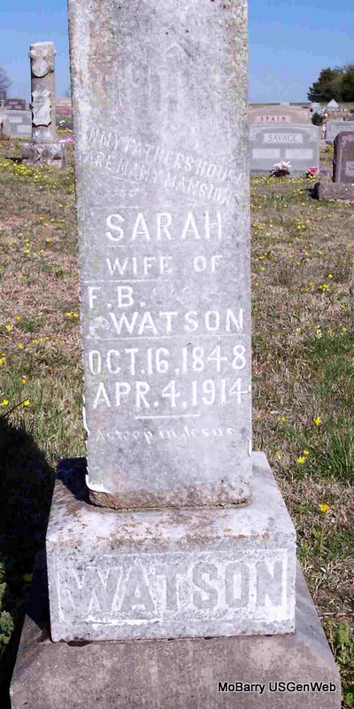 | WATSON, Sarah (PORTER) | Oct. 16, 1848 OH |