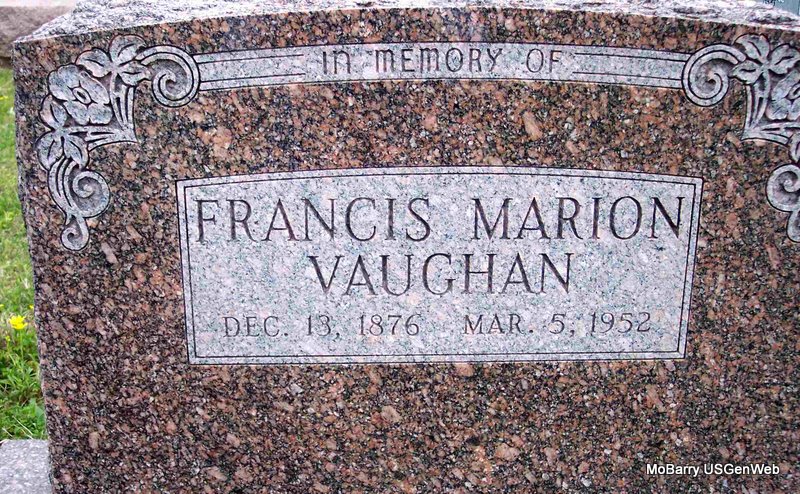 | VAUGHAN, Francis Marion | Dec. 13, 1876 Near Cassville, Barry Co., MO |