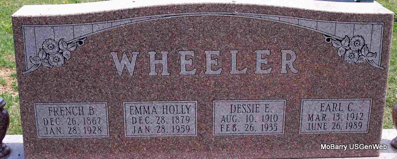 | WILSON, John Preston | Apr. 13, 1890 | Dec. 10, 1981 | SSW: Etta N. - Inscription: "Married July 14, 1918" - Research Note: SSDI gives his last residence as Joplin, Jasper Co., MO. He was the son of Elias Wilson and Gertrude Hollcroft. | SSDI Census Phyllis Long Photo Diana Cope |