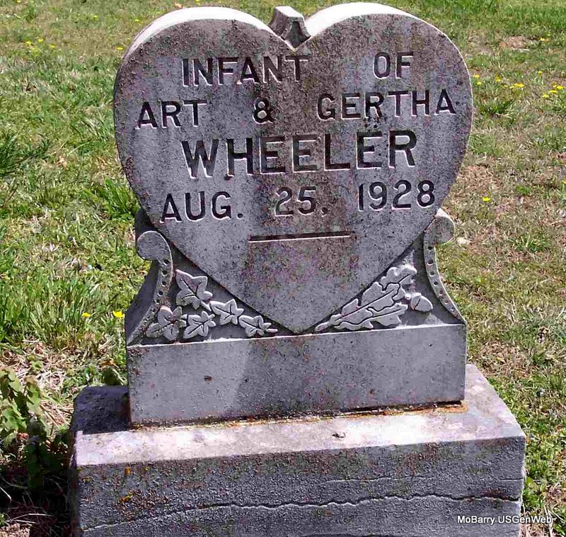 Inscription: "Son of J. C. and P. E." - Research Note: He was a son of Jerome and Pearl (McKee) Wallace. He was stillborn. Jerome Wallace of 304 West Olive, Aurora, MO was the informant on the death certificate. | Family Records Donna Cooper Death Certificate Phyllis Long Photo Diana Cope |