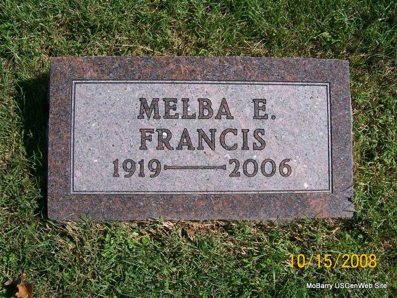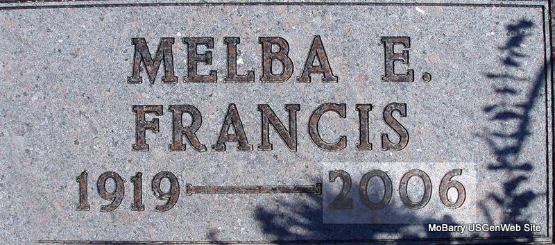 | FRANCIS, Melba B. (EVANS) | Oct. 15, 1919 Wheaton, Barry Co., MO |