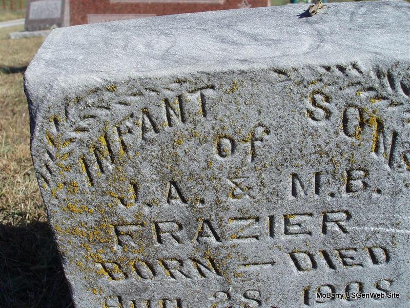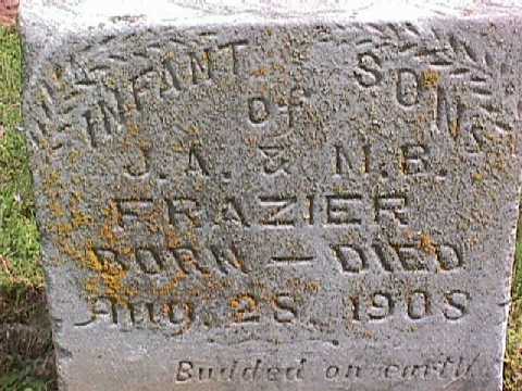 | FRAZIER, Infant | Aug. 28, 1908 | Aug. 28, 1908 | Infant son of J. A. and M. B. - Research Note: Baby of Joseph Abner Frazier and Mary Bell Franklin. - Another Photo - Another Photo |