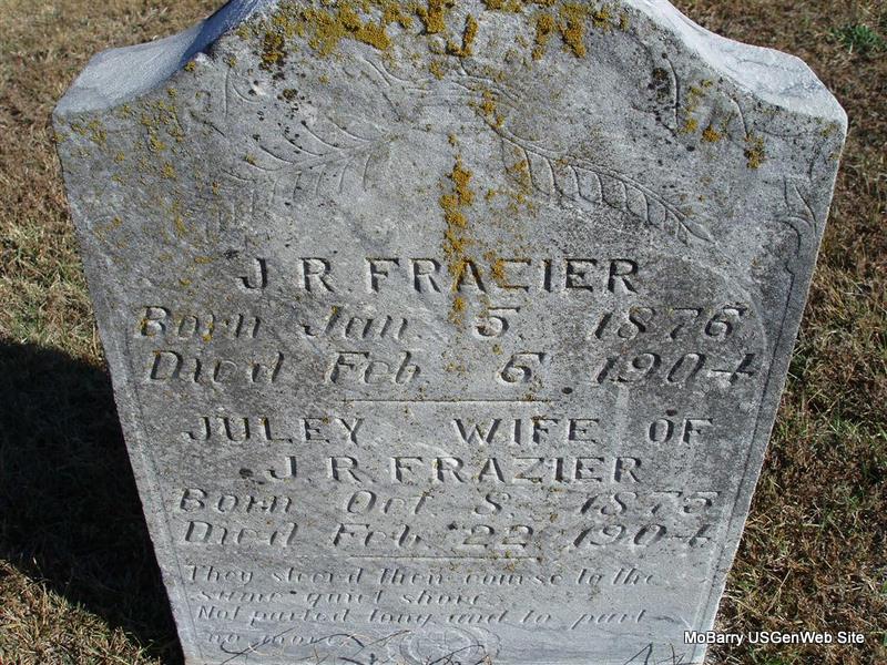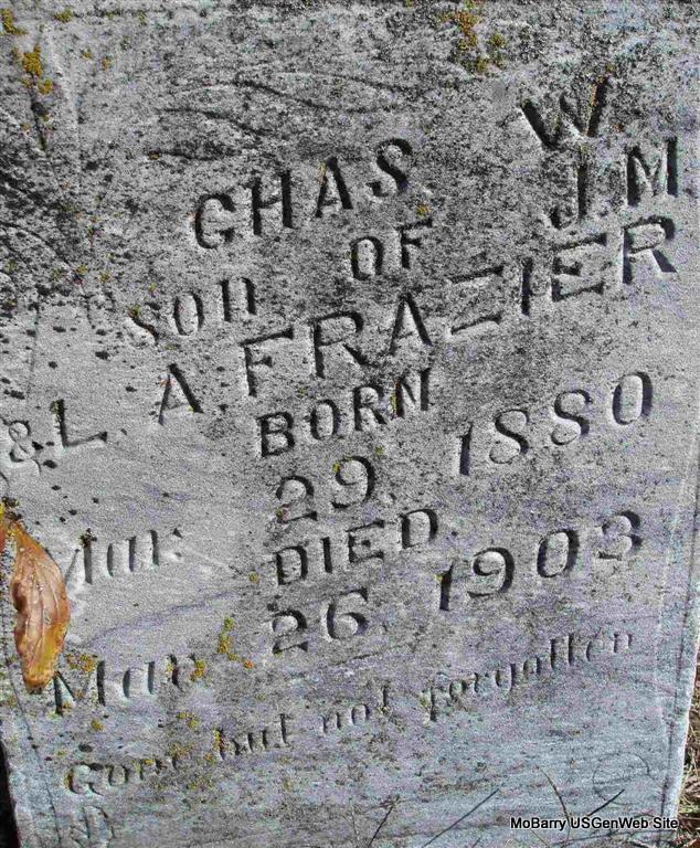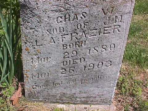 | FRAZIER Charles W. | Mar. 29, 1880 | Mar. 26, 1903 | Inscription: "Son of J. M and L. A. Frazier" - Research Note: Son of John M. Frazier and Lucinda Brown. - Another Photo |