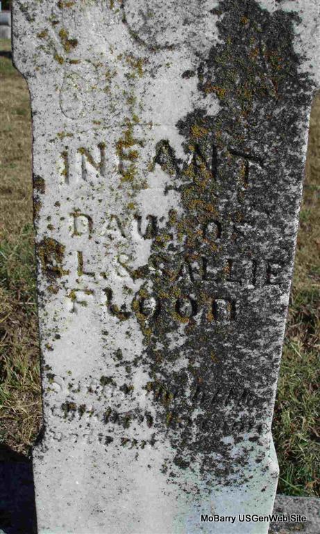| FLOOD, Infant | No Date | No Date | Inscription: "Infant Dau. of E. L. and Sallie Flood" | Photo Ralph and Betty Lamberson |