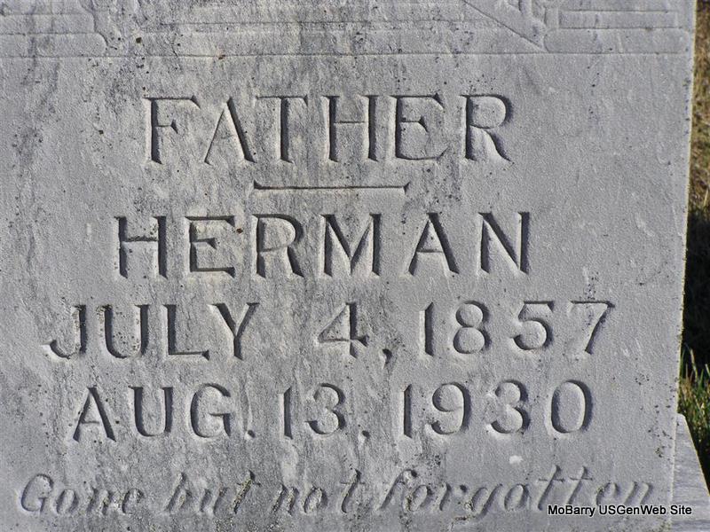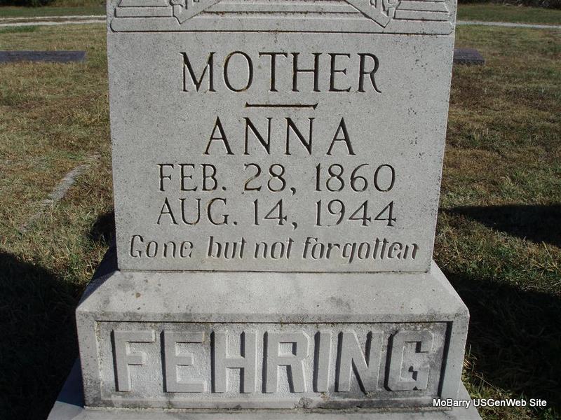 Inscription: "Mother" - Research Note: Wife of Herman Fehring. Parents not named on the death certificate. Emma Smelser (daughter) of Joplin, MO was the informant. | Death Certificate Donna Cooper Photo Ralph and Betty Lamberson |