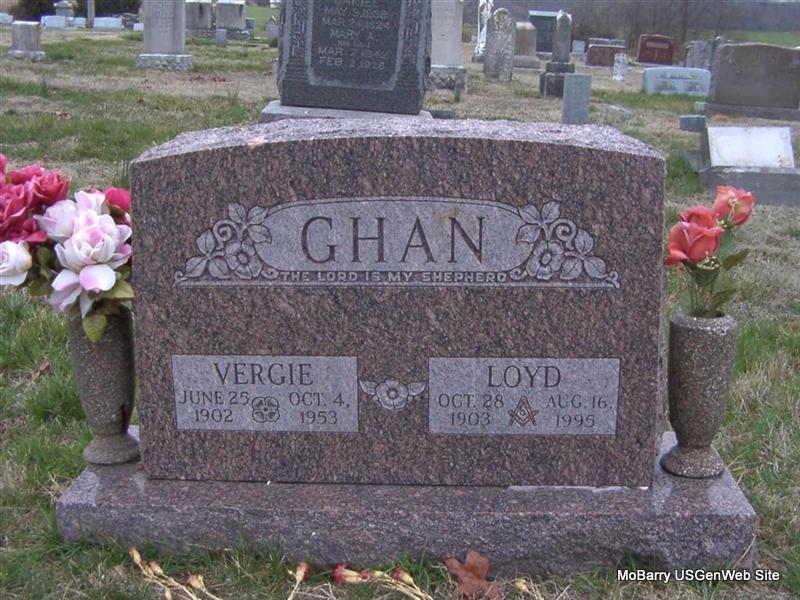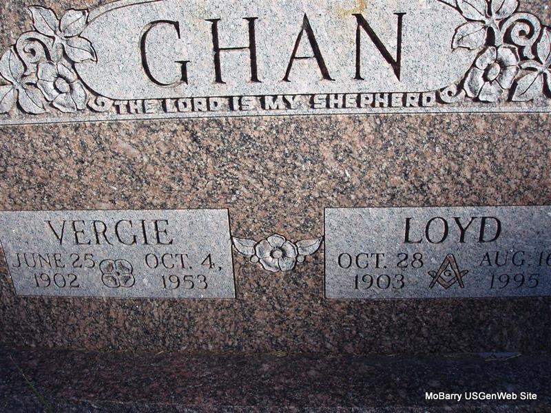 | GHAN, Vergie Verila (CARTWRIGHT) | June 25, 1902 | Oct. 4, 1953 Near Wheaton, Barry Co., MO |