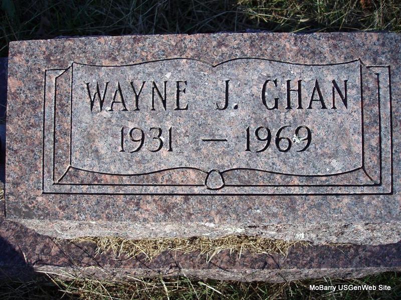 | GHAN, Wayne J. | 1931 | 1969 | Research Note: Son of John Loyd Ghan and Vergie Verila Cartwright. | Census Phyllis Long Photo Ralph and Betty Lamberson |