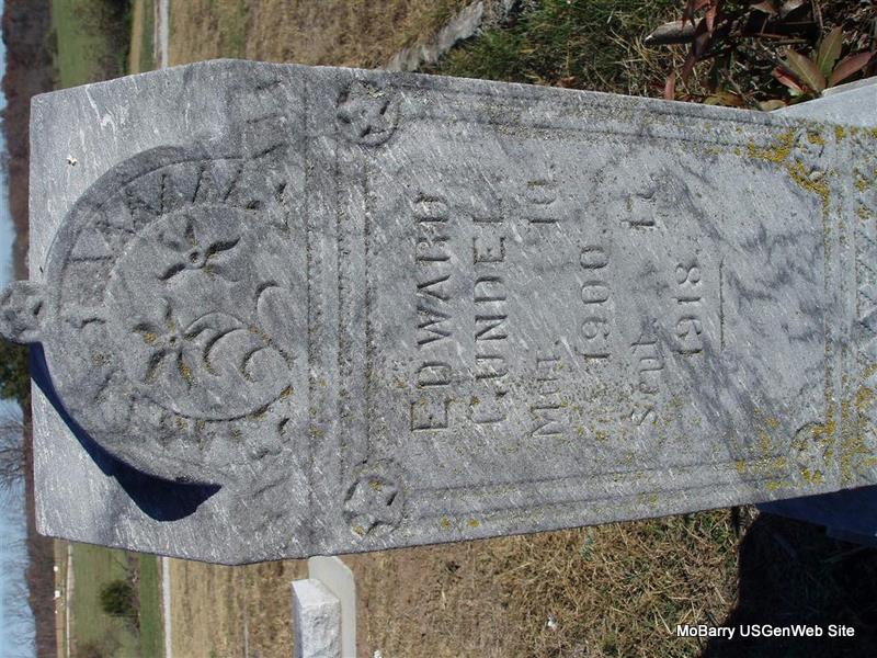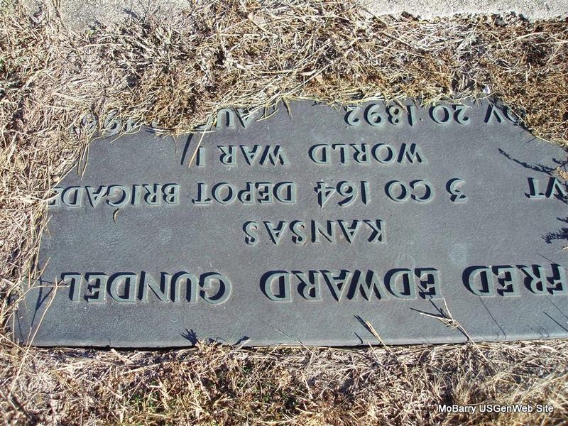Inscription: "KANSAS PVT 3 CO 164 DEPOT BRIGADE WORLD WAR I" - Research Note: Photo of double stone at findagrave.com. SSW: Ada M. Son of Fred and Fannie (Lucas) Gundel. | Census Phyllis Long Photo Ralph and Betty Lamberson |