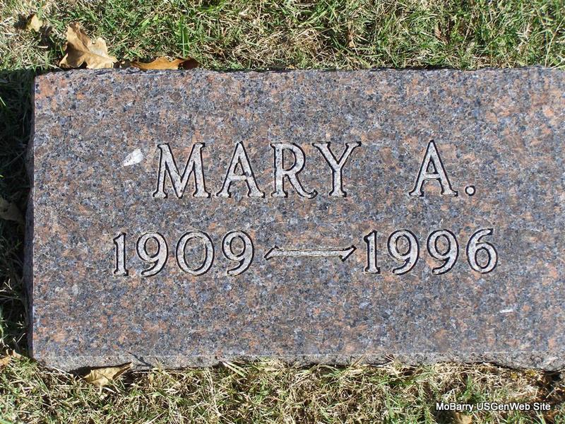 Inscription: "Mother" - Research Note: Daughter of James Elbert McQueen born Lee Co., VA and Mary Gilbert born VA. H. P. Flanagan of Newtonia, Newton Co., MO was the informant on the death certificate. Second wife of Hugh Patrick McQueen and sister to his first wife Rebecca Jean. Hugh died in 1948 and is buried at Mt. Calvary Cemetery, Kansas City, Wyandotte Co., KS. | Death Certificate Census Phyllis Long Photo Ralph and Betty Lamberson |