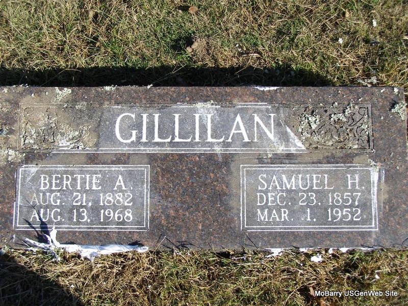 | GILLILAN, Bertie Amelia (KELLY) | Aug. 21, 1882 | Aug. 13, 1968 | SSW: Samuel H. - Research Note: She was a music teacher. Daughter of James Mathis Kelly and Salina Caroline McKinley. | Census Phyllis Long Photo Ralph and Betty Lamberson |