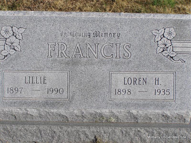 | FRANCIS, Loren Hurshel | Jan. 25, 1898 Rural Pioneer, Barry Co., MO |