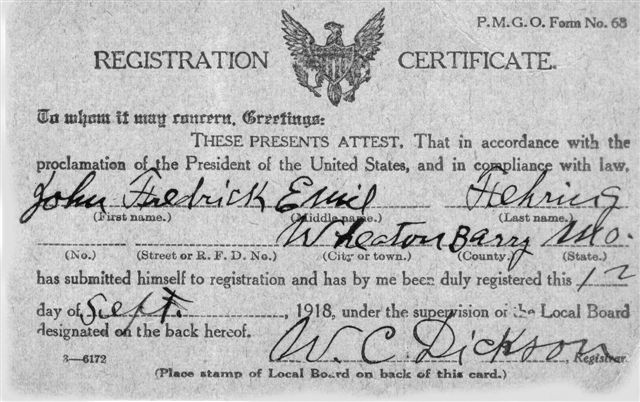 SSW: Junie M. - Inscription: "Father" - Research Note: Son of Herman Fehring and Anna Bertha Rausch. - WW I Registration Card | Census Phyllis Long Photo Ralph and Betty Lamberson |
