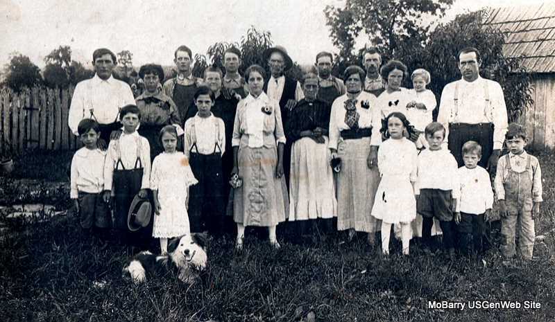 The photo was taken by F. A. Taggart, Eagle Rock, MO about 1915. Submitted by: Darla (Ball) Marbut Ft Row L-R: Alvie Garrett, Lewis Garrett, Josie Garrett, Dallas Garrett (go to other children on front row) Nova Garrett, Homer Garrett, Warren Garrett, Buster Whittington Middle Row: Jim Garrett, Addie Maloney Garrett, Emma Burris Cole Garrett, Girl holding flowers in light dress – Elgie Garrett, LeVicy Garrett Weaver, Talitha Caroline Henderson, Kattie Marvel Easley Garrett, holding Ben Garrett, Thomas Melton Garrett. Back Row: Charles Ball, Eldon Ball, Isaac Newton Garrett, Amos Newton Garrett, and Finas Ball (On Mother’s original copy she has Mary Kitterman instead of Talitha Henderson.) Picture taken about 1915. Mother knew several of these people and I tend to go with her ID of Mary Kitterman instead of Talitha Henderson. If you want just put a ? and use Mary Kitterman. You see I don't know who told me it was Talitha Henderson. Finas Ball in the back row was a nephew of Isaac Newton Garrett as Finas' mother was Sarah Elizabeth Garrett Ball Reed. They were the children of Newton Jasper Garrett and his wife Louisa Bridgeman Garrett married September 22, 1836 in Atlanta, GA. It is said Newton was a singing teacher. In Oct 1837 he was commissioned as a 1st Lt. in the Campbell Co. Battalion, George Militia Florida/Seminole Indiana War. He makes this declaration for the purpose of obtaining bounty land to which he may be entitled under the "act granting bounty land to certain officers and soldiers who have been engaged in the military service of the United States. Recorded September 28th, 1850. /s/Newton J. Garrett. Source: The following month after his discharge, Newton Jasper married Louisa Bridgeman, a native of Virginia, who was born circa 1821. The marriage took place in Campbell County, Georgia on September 22, 1836 by a Justice of the Peace named John B. Smith. (Elizabeth Garrett Roth included a transcript of the marriage record.) Page 336, Back to Barry? As a young man, Newton taught at the school founded by his brother Elijah Garrett. In Oct 1837 he was commissioned as a 1st Lt. in the Campbell Co. Battalion, George Militia Florida/Seminole Indiana War. Submitted in 2010 by Darla (Ball) Marbut |
