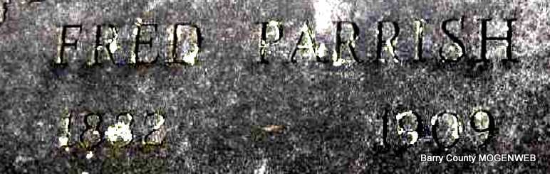 Research Note: Son of Mary F. Yates and George Parrish. -1900 Census, Flat Creek Twp., Barry Co., MO - Mary F. Parrish was listed with children: Fred b. Oct 1881, Minnie May, 1884, John, Jan. 1888. Mary was listed as a widow born in Illinois. | Photo Census Darla Ball Marbut |