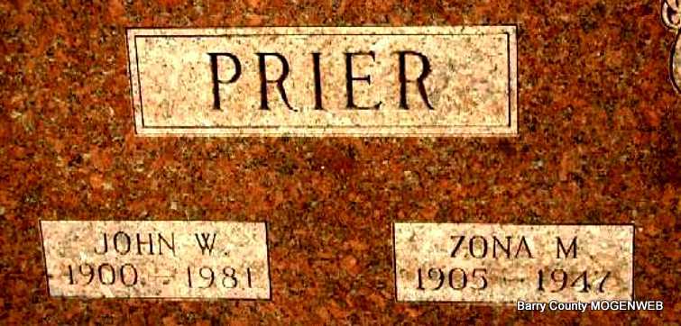 | PRIER, Arizona "Zona" Marie (SKELTON) | Feb. 15, 1905 Barry Co., MO |