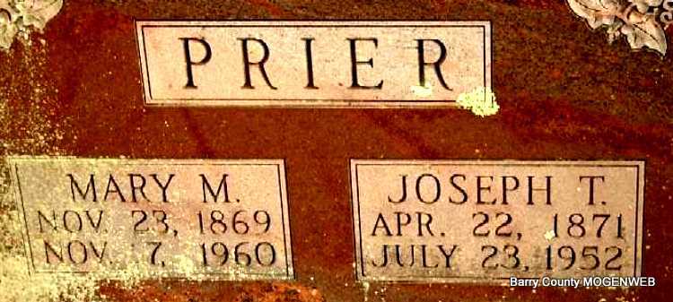 | PRIER, Joseph "Joe" Thomas | Apr. 22, 1871 Barry Co. MO |