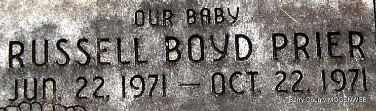 | PRIER, Russell Boyd | June 22, 1971 | Oct. 22, 1971 Eagle Rock, Barry Co., MO |