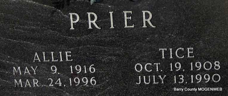 | PRIER, Allie (EASLEY) | May 9, 1916 Barry Co., MO |