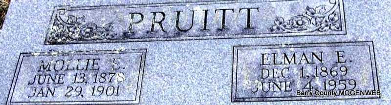 | PRUITT, Mollie E. (SHARP) | June 13, 1878 | Jan. 29, 1901 Barry Co., MO |