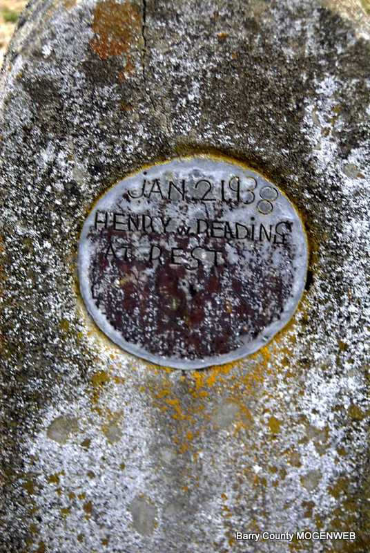 Research Note: Homemade stone with only the death date. He married Mary Emaline Danley. Henry Wilburn Reading was born Aug. 19, 1861 in Quincey, IL. He married Mary E. Danley and their children were Flora, Ora Mace (Mrs. Charley Jessie Gentry), Julia (1st married to Grant Cooper and 2nd to Henry Stringer). | Photo Census Stone Darla Ball Marbut |