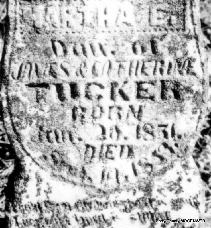 | TUCKER, Martha E. | Jan. 20, 1851 | Sep. 14, 1853 | Inscription: "Daughter of James and Catherine Tucker" | Headstone Mary Homesley Photo Darla Ball Marbut |