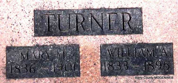 | TURNER, William A. | 1833 | 1895 Eagle Rock, Barry Co., MO |