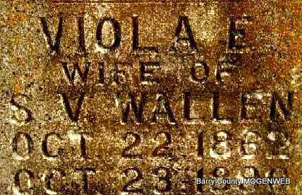 | WALLEN, Viola E. (GODDARD) | Oct. 22, 1862 | Oct. 23, 1896 Barry Co., MO |