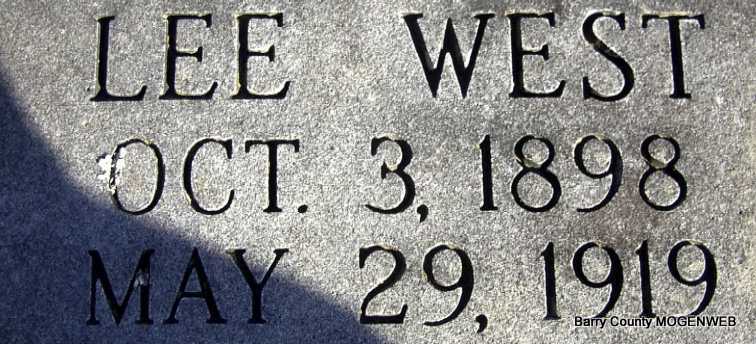 | WEST, Lee | Oct. 3, 1898 Barry Co., MO |