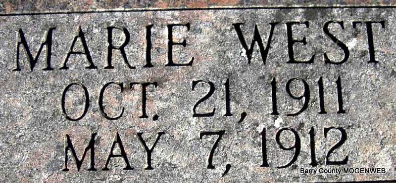 | WEST, Marie | Oct. 21, 1911 Barry Co., MO |