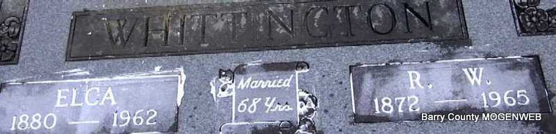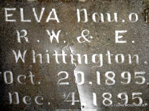 | WHITTINGTON, Elva | Oct. 20, 1895 | Dec. 4, 1895 Eagle Rock, Barry Co., MO |