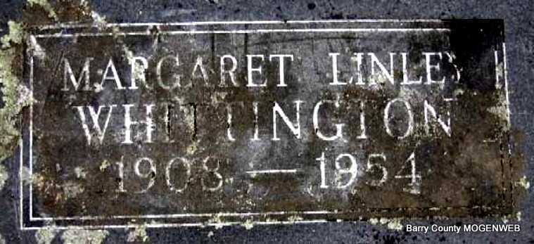 | WHITTINGTON, Margaret Dovie (LINLEY) | Sept. 2, 1908 Carthage, Jasper Co., MO |