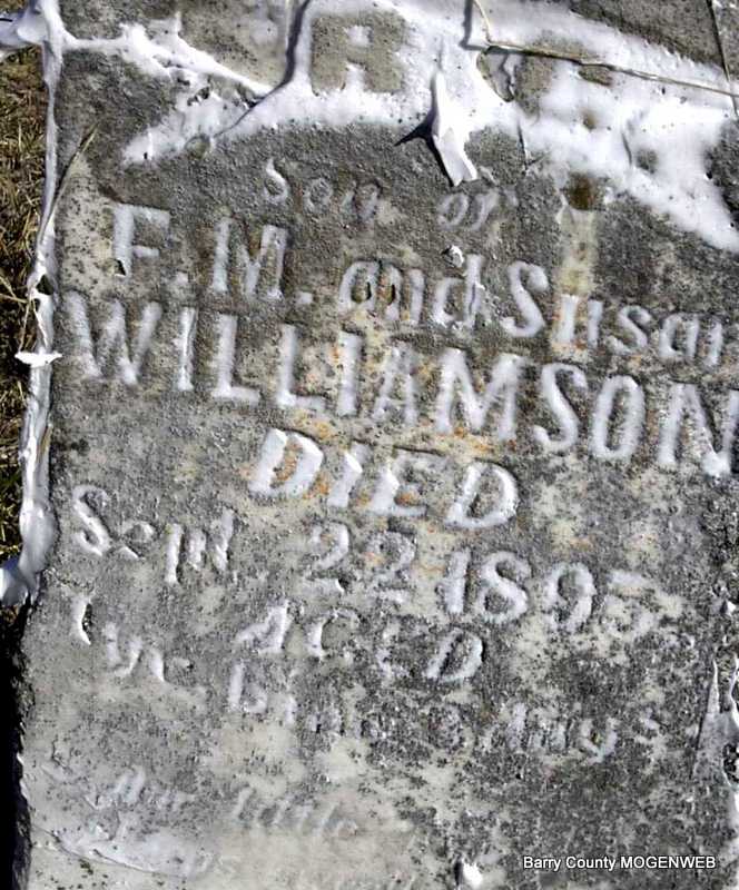 | WILLIAMSON, R. G. | Abt. 1893 | Sept. 22, 1895 Barry Co., MO |