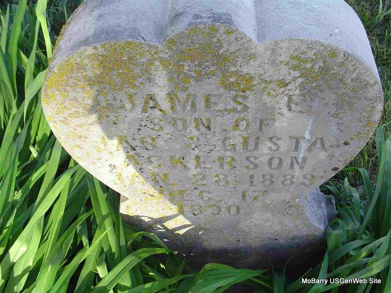 | ACKERSON, James | Jan. 23, 1889 | Dec. 17, 1890 | Inscription: "Son of James and Gusta Ackerson" | Photo Donna Cooper |