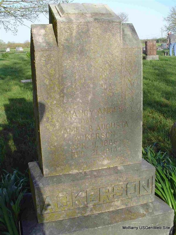 | ACKERSON, Mancy Agnes | Apr. 11, 1886 Lawrence Co., MO |