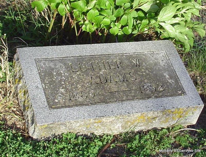 | ADAMS, Luther W. | 1869 | 1892 | Research Note: Son of James Madison Adams and Emma Mary Williams. Brother to Matthew Eugene Adams. - Adams Headstone | Census Phyllis Long Photo Donna Cooper |