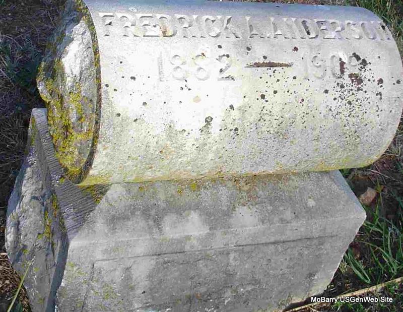 Research Note: Olof became a U. S. citizen on Apr. 22, 1878 at age 47 at District Court, Concordia, Cloud Co., KS. His death certificate has that he was single, age 83 years 21 days old, and a farmer. He was a son of Charles Anderson born Sweden, mother's maiden name not known but born in Sweden. Charles Anderson of Monett, MO was the informant. - Cassville Republican, January 30, 1913 - Aged Citizen Dead: Olof F. Anderson died Friday, January 17, at his home on King's Prairie, age 82 years and 23 days. His death was due to old age and complications of diseases. Mr. Anderson was born December 25, 1830 in Sweden and came to America in 1882, settling in Barry County on King's Prairie where he lived until death. He leaves a son, Charles Anderson, the only member of the family living in this country. In his death the people of King's Prairie loses one of their best citizens and neighbors. Funeral services were held Saturday, Jan. 18, and his body laid to rest at the King's Prairie Cemetery. | Online Obit Death Certificate Naturalization Index Phyllis Long Photo Donna Cooper |