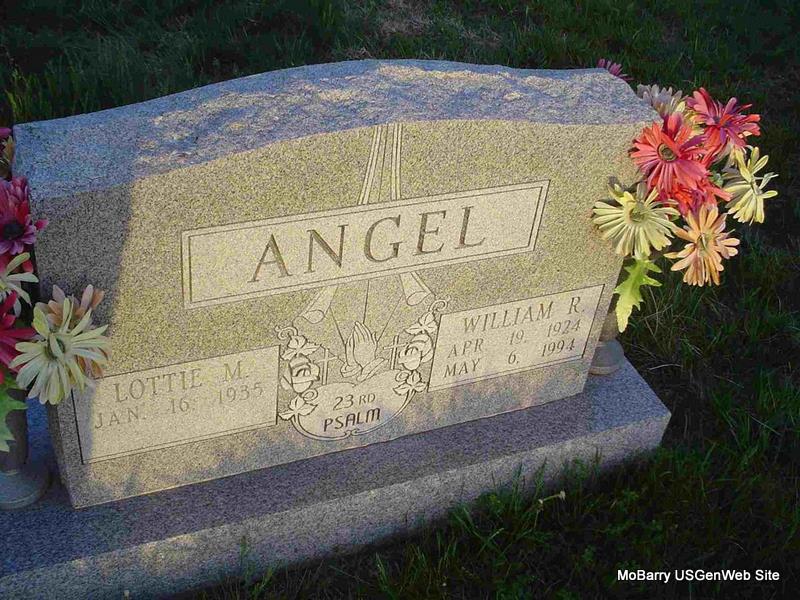 | ANGEL, William Robert | Apr. 19, 1924 | May 6, 1994 | SSW: Lottie M. - Research Note: Photo of Military Stone at findagrave.com. Inscription:"EN2 US Navy, WW II, Korea" | Photo Donna Cooper |