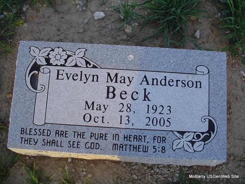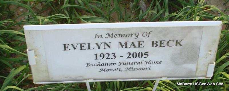 Research Note: Evelyn was born August 28, 1923, the daughter of John Alfred and Pauline (Gibbons) Anderson in St. Johns, Arizona, being a descendent of early Mormon pioneers that were sent to settle in Arizona. She attended school in St. Johns, Chicago, Los Angeles, and Provo, Utah (Brigham Young University). She obtained a masters degree in elementary education and music. She taught for many years in California and then for five years at BYU. She played the viola in many orchestras, including the Ozark Festival Orchestra. She was also an accomplished drum majorette, dancer, artist, teacher, tennis player, and a very effective youth leader. She taught early morning Bible studies and adult Sunday school. Evelyn married Alan Beck on September 11, 1946, and later married him for time and eternity in the temple. - Temporary Marker | Monett Times Phyllis Long Photo Donna Cooper |