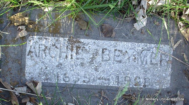 Research Note: His wife was Myra Miller. Son of James H. Beymer born OH and Margaret Whitacre born IN. Burton Marney of Carl Junction, MO was the informant on the death certificate. - April 14, 1917, Saturday, Cassville Democrat - County News: The Times says a son of Archie Beymer was recently killed at Joplin, by an explosion in the mines. Deceased was a nephew of Chester Beymer that resides near Forest Grove, northeast of this city. | Death Certificate Online Newspapers Phyllis Long Photo Donna Cooper |