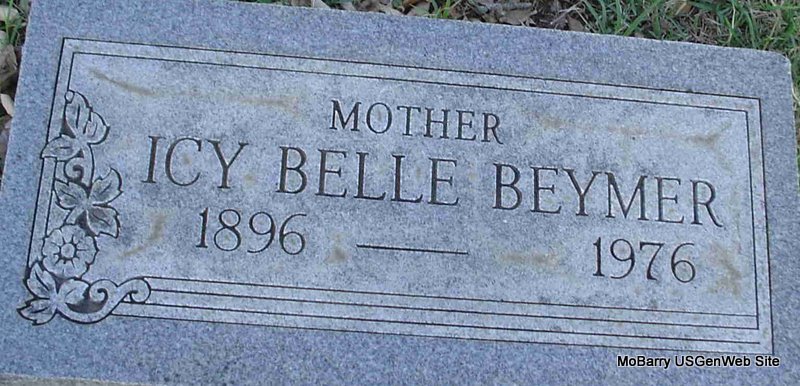 | BEYMER, Icy Belle (GOODNIGHT) | 1896 | 1976 | Inscription: "Mother" - Research Note: Wife of Claud Amon Beymer. Daughter of Jonathan David Goodnight and Martha "Mattie" Todd. | Census Phyllis Long Photo Donna Cooper |