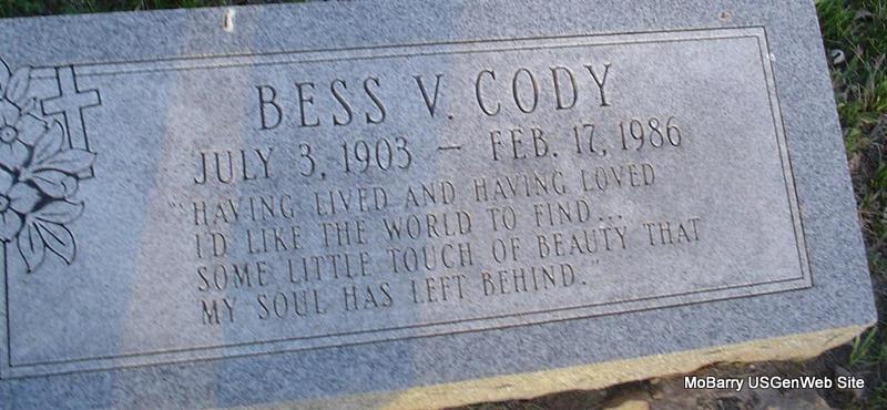 | CODY, Ethel Mae (JACKSON) (HARRIS) | June 16, 1915 Monett, Barry Co., MO |