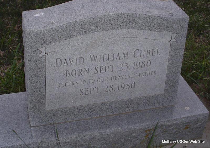 | CUBEL, David William | Sept. 23, 1980 | Sept. 28, 1980 | Inscription: "Returned to Our Heavenly Father" - Back of Stone | Photo Donna Cooper |
