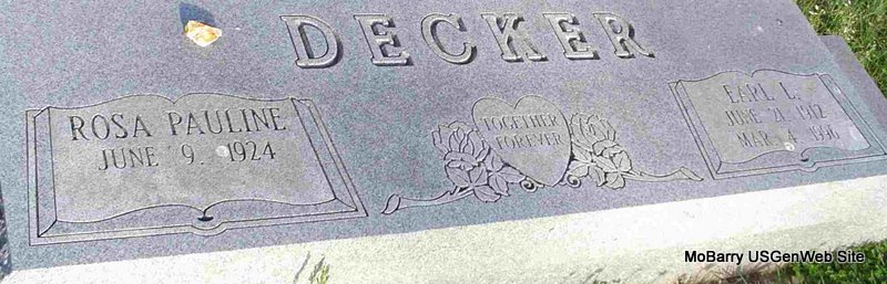 | DECKER, Rosa Pauline | June 9, 1924 | No Date | SSW: Earl L. | Photo Donna Cooper |