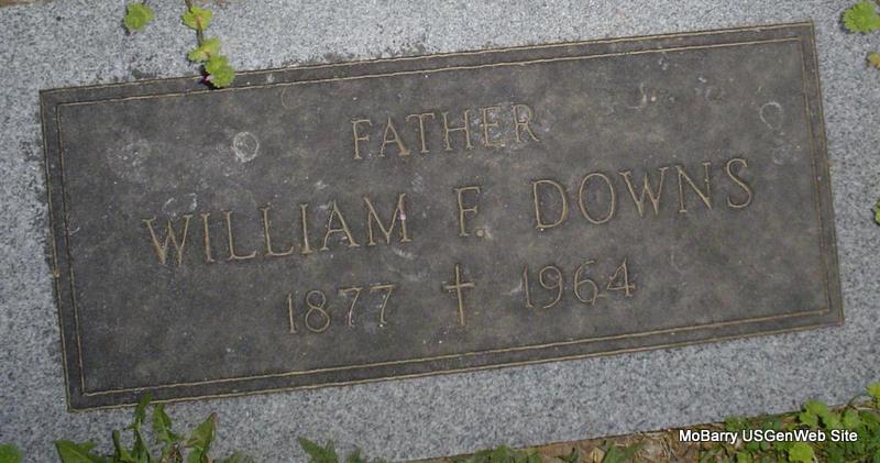 1964 | Inscription: "Father" - Research Note: Son of William Carroll Downs and Elizabeth Jane Watkins. William F. Downs,, age 26, married Mary M. Justus, age 14, on Oct. 11, 1903 in Monett, Barry Co., MO. Nathan C. Justus, father of Mary, gave consent. - 1900 Census, Roaring River, Barry, Missouri - He was age 22, living with Samuel and Ellen Elliot and listed as a partner. - 1910 Census, Monett Ward 1, Barry, Missouri - William Downs, age 32, Mary, age 19, with son Lester, age 3, and daughter Ada, age 0. - 1910 Census, Monett Ward 1, Barry, Missouri - William Downs, age 41, Mary, age 28, Lester, age 12, Ada, age 10, and Chester, age 4. - 1930 Census, Muskogee, Muskogee, Oklahoma - William Downs, age 53, Mary, age 39, William Chester, age 14. - 1940 Census, Muskogee, Muskogee, Oklahoma - W. F. Downs, age 63, widowed, living with son Lester, age 34, and his wife Syble, age 23. - On the WW II Draft Registration, 1942, he was age 64, living at Rt. 1, Council Hill, Muskogee, OK. Person that would always know his address was John Blackwell, Rt. 1, Council Hill, OK. | MO Marriage Records WW II Draft Reg. Census Phyllis Long Photo Donna Cooper |